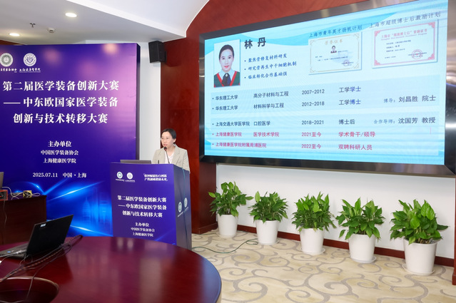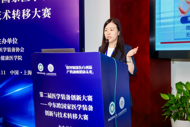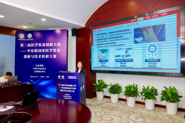 2025年7月11日,备受瞩目的“第二届医学装备创新大赛——中东欧国家医学装备创新与技术转移大赛”决赛在上海健康医学院北苑1号楼1楼隆重举行。本届大赛由中国医学装备协会主办,上海健康医学院等单位联合承办,旨在推动医学装备领域科技创新与产业深度融合,聚焦“产教融合、医工协同、数智赋能”主题。我院教师马琳琳、林丹凭借其优秀的创新项目成功晋级决赛,并在决赛赛场上进行了精彩的路演汇报。