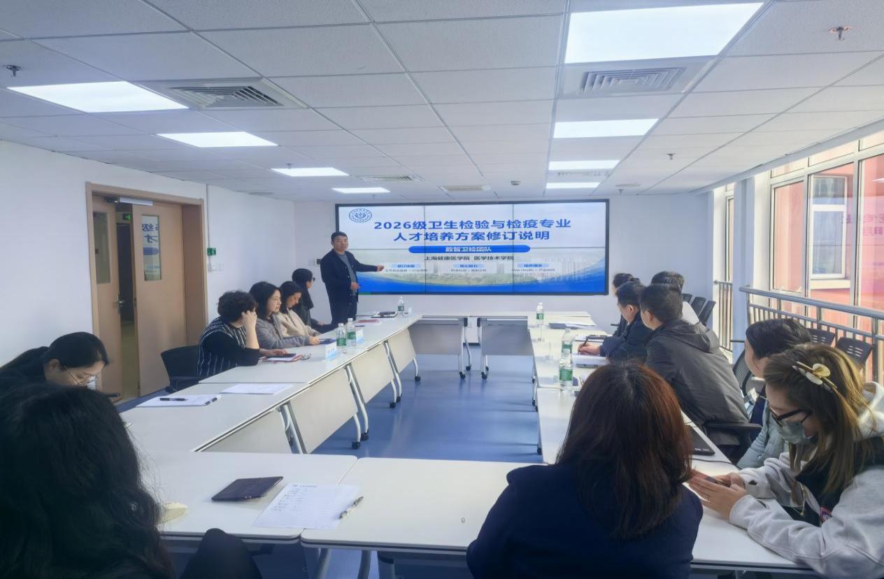 随后,卫检专业教研室主任芮闯围绕卫生检验与检疫专业近五年就业数据及对标院校调研结果,深入分析了专业发展现状与就业趋势。专业拟构建涵盖 “人力环境(食药化品)”、“环境监测分析”、“动物健康(人畜共患病)” 三大维度的 “One Health”融合平台,重点布局化妆品毒理检测、动物源性食品检测领域。在培养模式上,探索将原有“3+1”模式调整为“2.5+0.5+1”模式可行性。