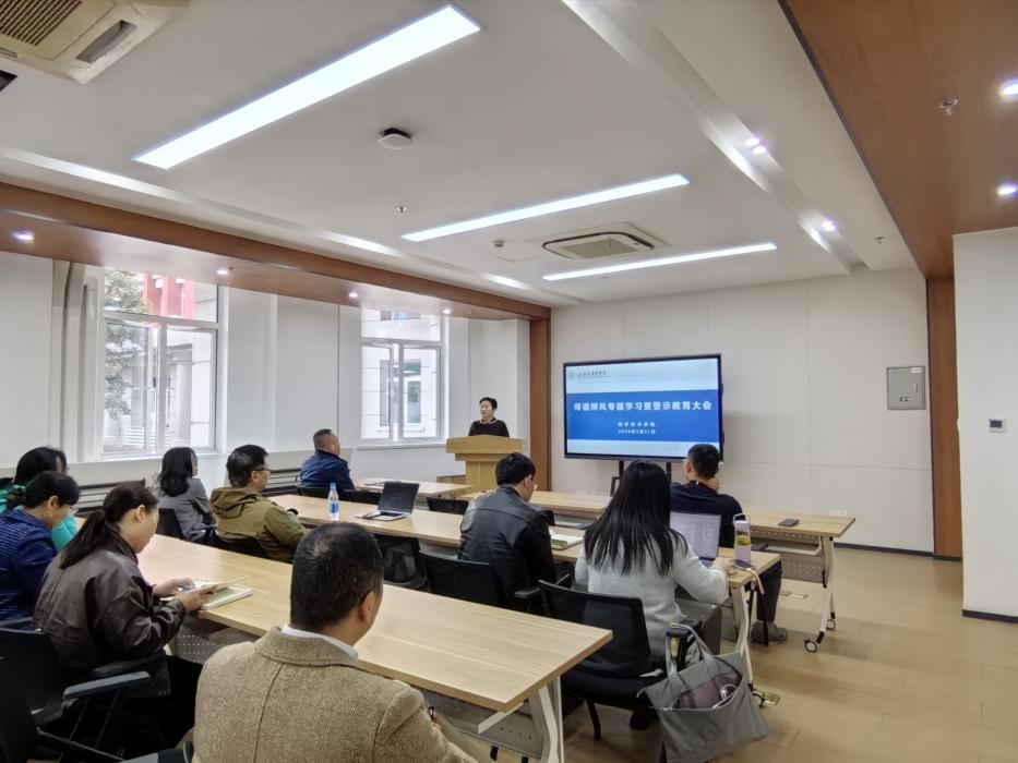 党总支书记姚谷芳领学了《新时代高校教师职业行为十项准则》和高校教师职业行为“十不准”,她指出,“十项准则”和“十不准”是行为底线和职业红线,是全体教师日常开展教育教学、学术科研等工作的基本遵循。随后,姚谷芳结合教师师德失范典型案例,深入剖析案例背后的思想根源、行为危害与深刻教训,用“身边事”警醒“身边人”。她强调,党的十八大以来,以习近平同志为核心的党中央高度重视教师队伍建设,特别是师德师风建设。希望全院教职工要始终坚守底线,不越红线,以“捧着一颗心来,不带半根草去”的精神投身教育事业。