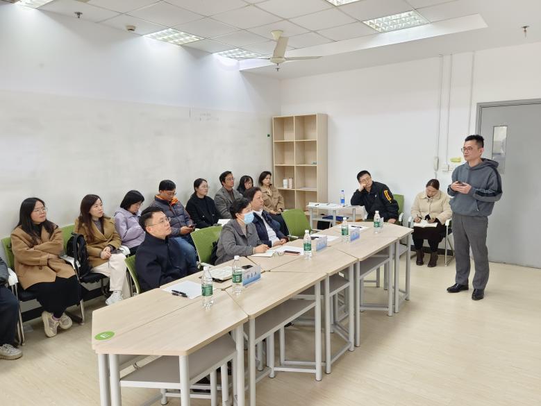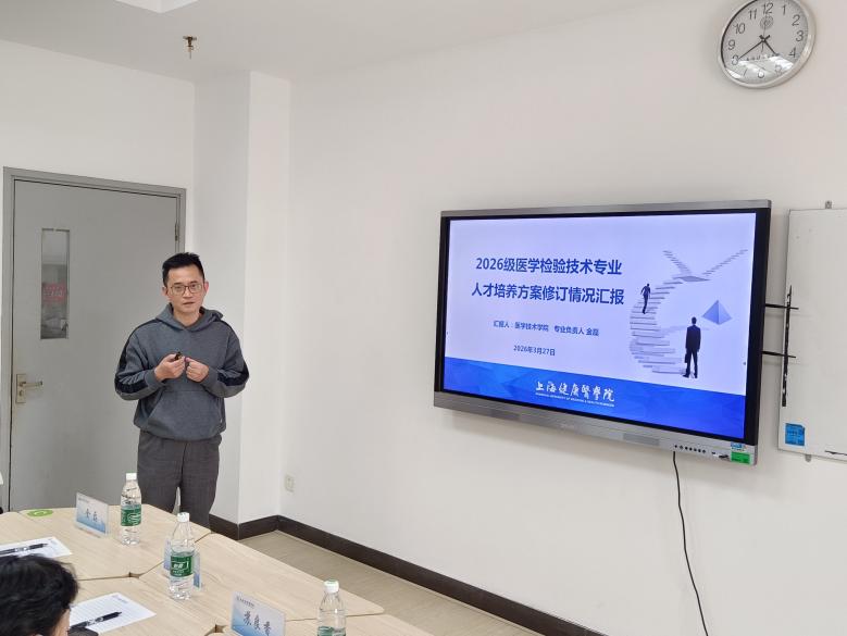 随后,金磊从调研工作开展、调研核心结果、方案修订初步思路等方面,详细汇报2026级医学检验技术专业人才培养方案修订筹备情况。为精准把握行业人才需求变化,专业专项调研团队通过专题研讨会、定向问卷调查相结合的方式,开展全方位、多维度调研,先后走访浙江中医药大学、杭州医学院等兄弟院校,并与本市多家IVD行业头部企业开展产教融合研讨,全面收集各方在人才培养、产教融合、就业发展等方面的意见建议。调研发现,行业人才需求已向全产业链延伸,专业需求从“医院导向”转向“全产业链导向”,实现人才培养从“单一技能”到“医学+X”复合能力的转变。