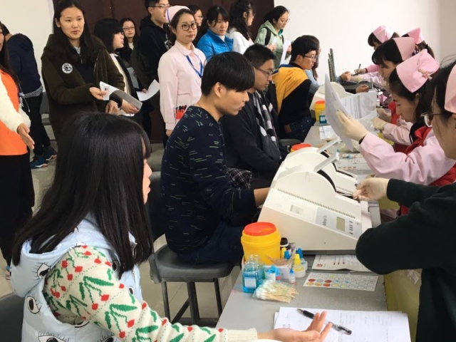 3月31日上午,best365中国官方网站的120多位献血同学早早来到南苑一号楼献血现场,等待血液中心的工作人员。同时,学院书记、副书记、各位辅导员纷纷来到现场,关心慰问来献血的同学们。各班级的班长、团支书冲在献血服务第一现场,时刻关心着班级同学献血时的各种情况。