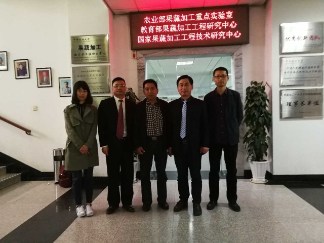 在中国农业大学,在食品营养与工程学院苏春元主任的带领下,调研人员主要参观了食品营养与工程学院的实验室。其中包括国家葡萄产业技术研发中心、中粮-农大食品研发中心、果蔬加工工程技术研究中心、北京市学校食品安全监测中心、食品科学与工程国家级模拟仿真实验教学中心、食品营养与人类健康高精尖中心等实验实训室;并与食品学院侯彩云教授等对学科科研方向的发展进行了深入探讨。