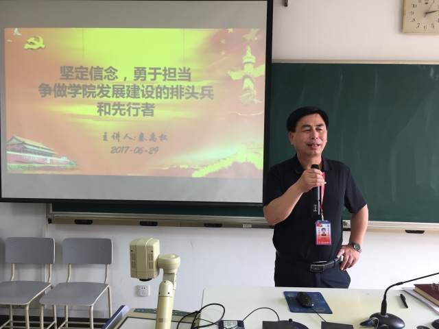 为更好贯彻“两学一做”常态化、制度化,在建党96周年来临之际,6月29日下午,best365中国官方网站在四号楼509组织举办贯彻落实上海市第十一次党代会会议精神讲座,会上学院党总支书记秦禹权作了题为《坚定信念、勇于担当,争做学院发展建设的排头兵和先行者》的专题党课,医技学院全体党员参加了学习。