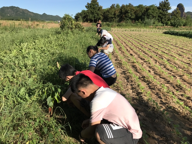 团队成员多数来自城市,对农村生活了解不多,我们特意组织队员走进农田,与农民一起干农活,体验田间劳作,体会农民的艰辛,明白“粒粒皆辛苦”的道理。烈日直射让团员们刚到田地里便汗如雨下,虽然来之前就知道会很热,但是田地里什么遮挡物都没有,还真让大家很吃力。在此期间与农民不断交流,询问他们相关的农业知识,以及天气状况对收成的影响等。大部分队员们表示之前都没接触过这些农活,但是从这次活动中感受到了农活的艰辛,农田拔草的手上动作考验的不仅是团员们对于农活的熟练程度,而且是每个人的毅力与体力。常银龙老师说,现在的大学生很少下农田,应该多提供这样的机会让大学生们下农田体验农民生活,让他们知道粮食的来之不易,并且努力学习,实现自身的价值。