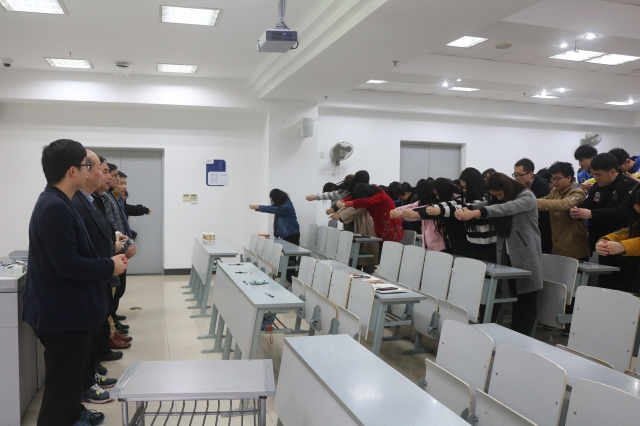 在悠长的古筝声中,由学生代表带领全体同学念诵《大学》节选,“大学之道,在明明德,在亲民,在止于至善……”,声音朗朗,气势磅礴,整个活动进入高潮。