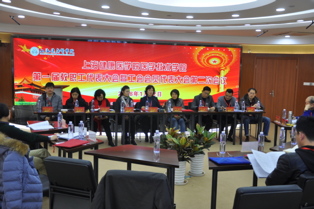 2018年1月22日,我校best365中国官方网站第一届教职工代表大会暨工会会员代表大会第二次会议举行。全体教代表共计31人出席了会议,大会由医技学院工会主席陆俊杰主持。副校长唐红梅、校工会副主席芦静老师到会祝贺并致辞。