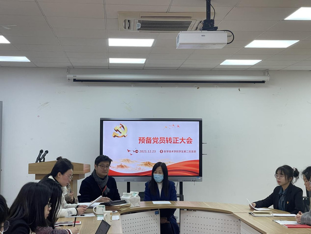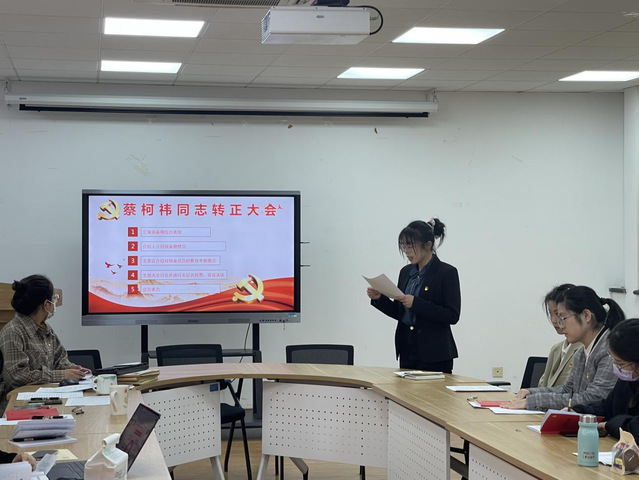 专题学习后,支部根据党员发展流程进行了陈滢、刘嘉怡、蔡柯祎三位同学的转正审批大会。