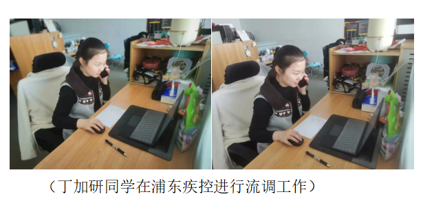 作为毕业班同学,丁加研正在浦东新区疾病预防控制中心实习。在疫情防控期间,得知单位流调人手不足后,她作为一名勇于担当、甘于奉献的入党积极分子,在面临毕业论文实验、考研复试等重要工作中,依然毫不犹豫地加入了浦东疾控防疫流调队伍,负责起密接流调和信息整理工作。对于加班加点的紧急工作,她毫无怨言;对于流调工作中的不被理解,她也一一耐心解答。她认为,身为一名医学生,有责任、有义务在疫情期间站出来,为防疫工作献一份力。近日传来好消息,丁加研顺利被录取为上海中医药大学研究生。她也坚定地相信,只要大家团结一致、共同努力,就一定能迎来胜利的曙光!