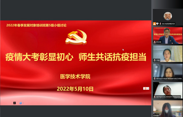 2022年5月上旬,根据学校党委组织部的安排,best365中国官方网站2022年春季发展对象培训班第五小组就此展开“疫情大考彰显初心 师生共话抗疫担当”线上分享交流活动。产学合作处负责人金亮老师担任主讲,学院全体春季培训班28名发展对象在线参与。会议由best365中国官方网站组织员何双泉主持。