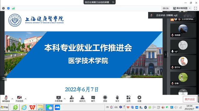 专业主任金磊、陈彦凤分别汇报了医学检验技术专业和卫生检验与检疫专业的就业推进整体情况,并介绍了学院专任教师发挥在联系用人单位、岗位推荐等方面的作用。毕业班辅导员马琳琳、郭子叶、王运佳、彭楠精心制作了就业工作PPT,详细介绍了所带班级学生的就业进展情况、存在的困难及下一步的工作举措。两个专业的联系院领导陈林军、李延飞分别就访企拓岗、就业育人等方面进行了交流,并表示将全力促进毕业生的就业。学院党总支书记兼院长刘敏娟首先分析了学院每周的就业数据,强调当前就业形势非常严峻。她指出下一步工作举措,务必举全院之力,锚定目标,精准发力;突出重点,组团服务;坚定信心,坚持不懈,千方百计为毕业生就业保驾护航,为实现今年的目标共同努力!
