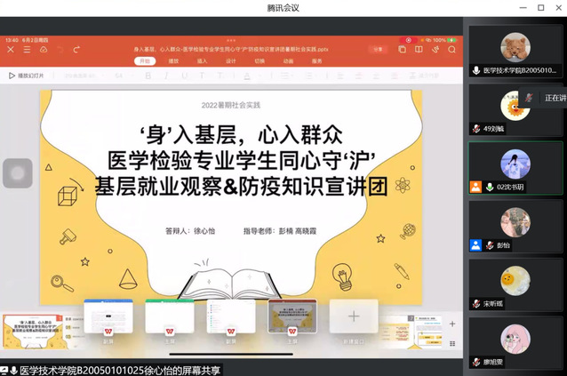 为贯彻习近平新时代中国特色社会主义思想以及会议精神,引导新时代健康学子知行合一,“行是知之始,知是行之成”,在社会实践的课堂中展现健康学子的风采。6月2日下午13:00,best365中国官方网站暑期社会实践答辩如期线上举行。出席本次答辩的有best365中国官方网站党总支副书记高晓霞、全体专职辅导员及各团队的答辩负责人。